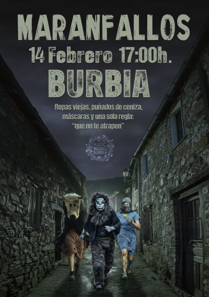 El 14 de febrero a las 17:00 h, las calles de Burbia se llenan de misterio con los Maranfallos 👹.